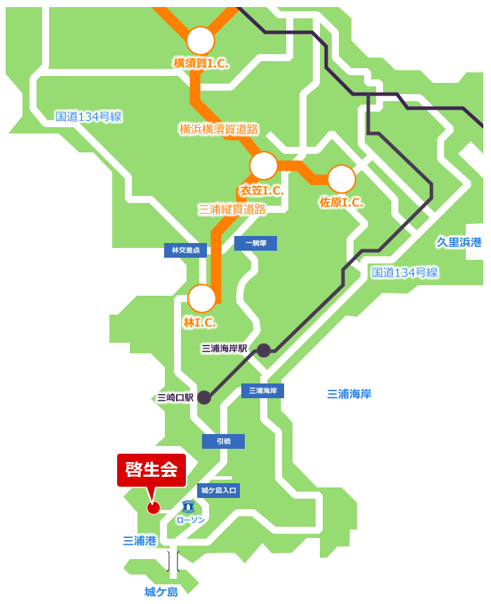 三浦縦貫道路 林I.C.が最寄りのを左折。国道134号線を直線。