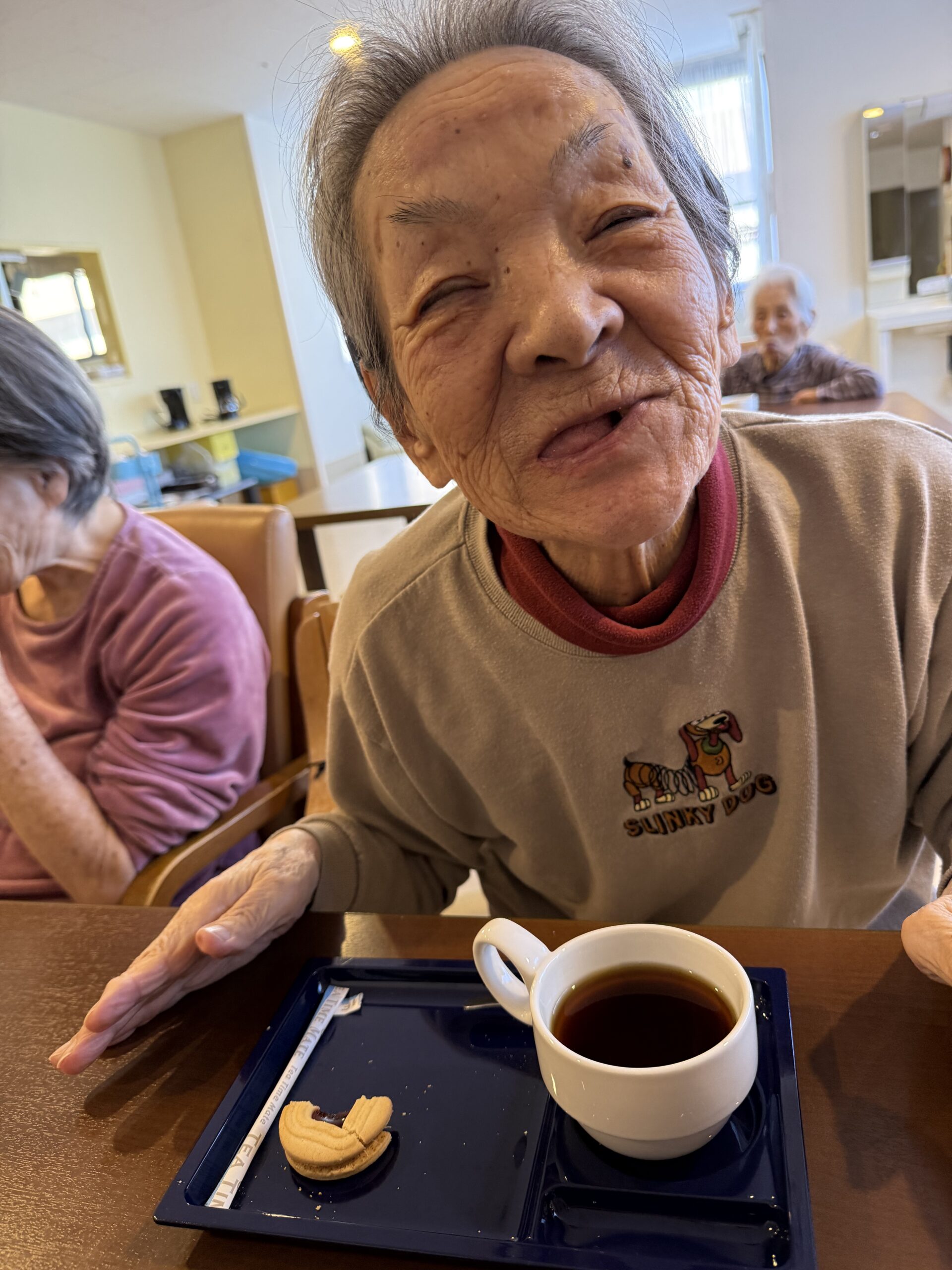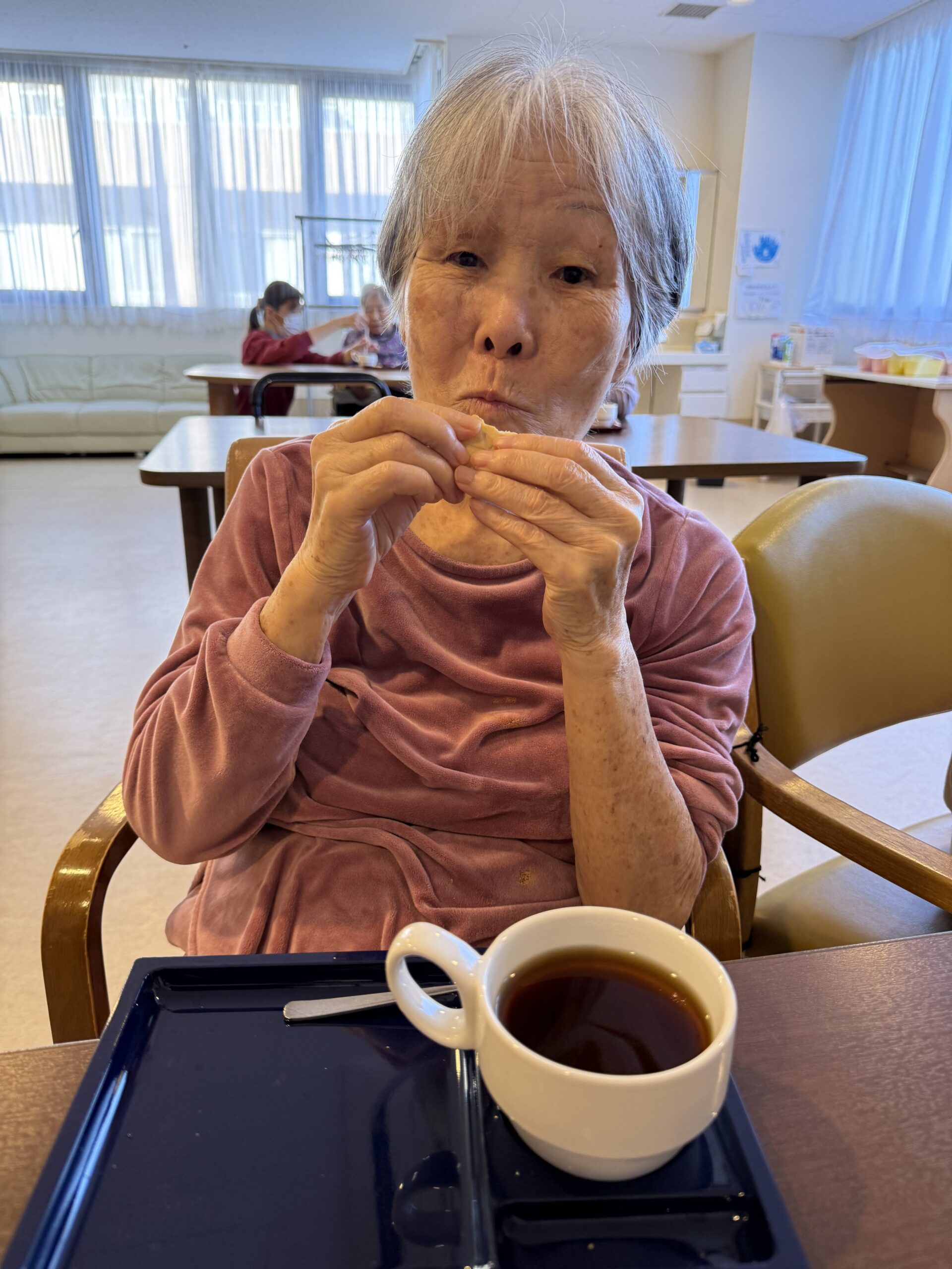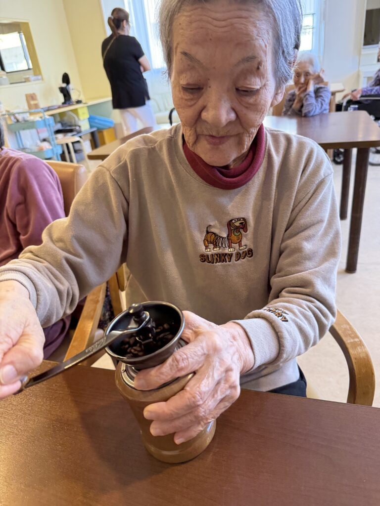 たんぽぽで毎月開催している「コーヒークラブ」は、入居者さまのリクエストから発足しました。元パティシエとして活躍されていた入居者さまは、喫茶店巡りがご趣味でした。あるとき「コーヒーの香りを楽しみたい」とのお声を頂き「では、コーヒークラブでも作って皆さまで豆を挽いてコーヒーをいれましょう」と提案したところから始まりました。もちろんリクエストくださった入居者さまは、部長となってご活躍いただいています。今回は、部長さまが病院から退院された記念に以前からリクエストいただいていた「コスタリカ産のコーヒー豆」をご用意しました。コスタリカ産のコーヒー豆は、最高級品種の一つとされており、香りも高く大変喜んでくださいました。