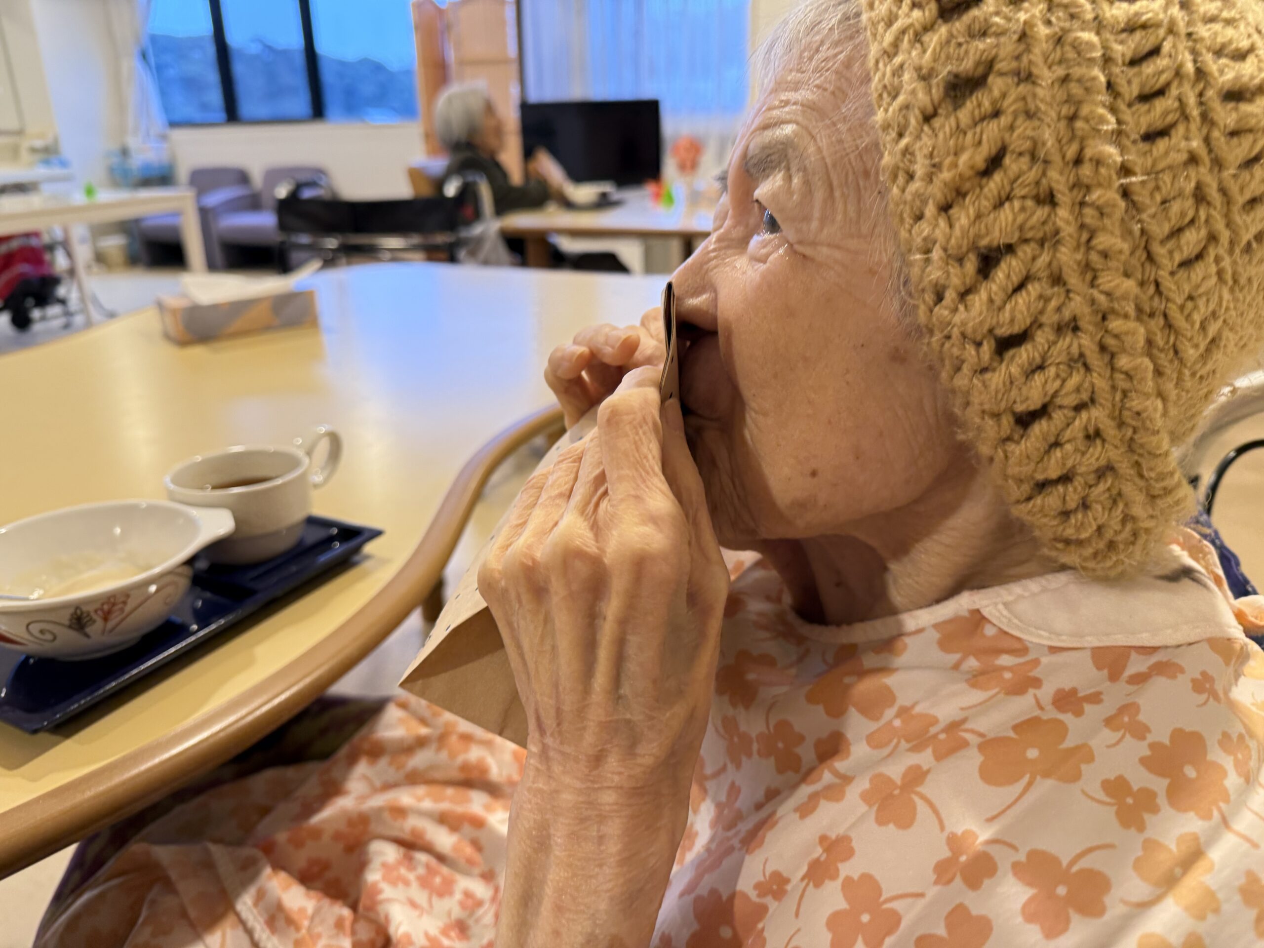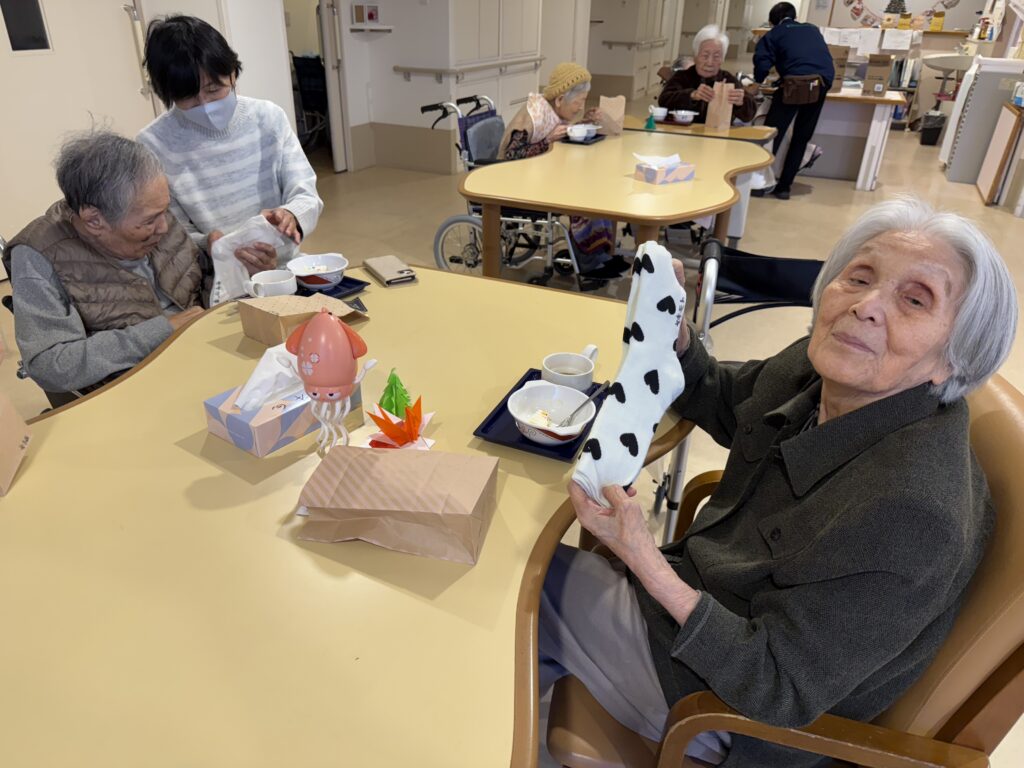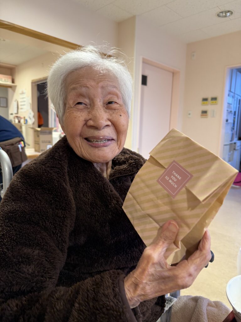 また、ささやかなクリスマスギフトとして、靴下のプレゼントもお渡ししました🧦✨嬉しすぎてギフトバッグにチュー💋したり「ちょうど欲しかった」「あたたかくて嬉しい元旦に卸す」と喜んでいただきました。地域にお住いのご家族のご来訪もあり、心も身体も温まるクリスマス会となりました。